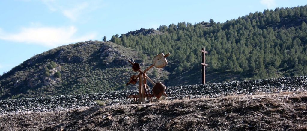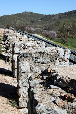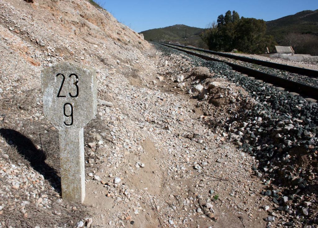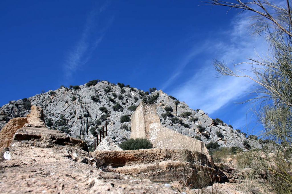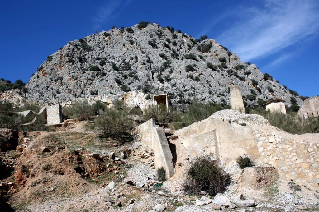 Rodeamos la cerca por el poco espacio que quedaba entre ésta y la vía. Llegamos a la cantera y nos detuvimos ante los edificios derruidos. Allí había un hueco en la valla nueva y un camino que ascendía lentamente, dando la vuelta a la Peña.