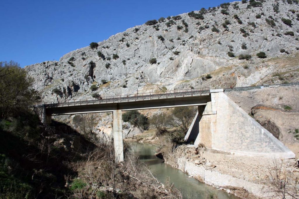 Lo encontramos en forma de viaducto ferroviario, unos treinta metros de vía que salvan el río hasta el lado contrario. Dos trenes pasaron mientras nos acercábamos y justo después del segundo pasamos a la carrera, ignorantes de si nos alejábamos del peligro o nos acercábamos a él.